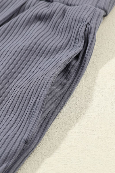 Ribbed Round Neck Top and Wide-Leg Pants Set